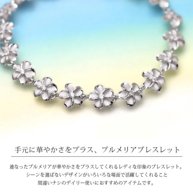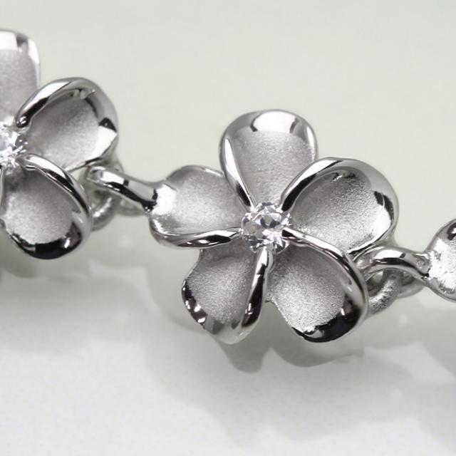 ハワイアンジュエリー ブレスレット 花 プルメリア 長さ調節可能 シルバー925 ロジウムコーティング ジルコニア パーツ アジャスター 彼女 妻 女性 レディース 誕生日 プレゼント クリスマス 【品番:SBR3508】