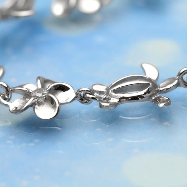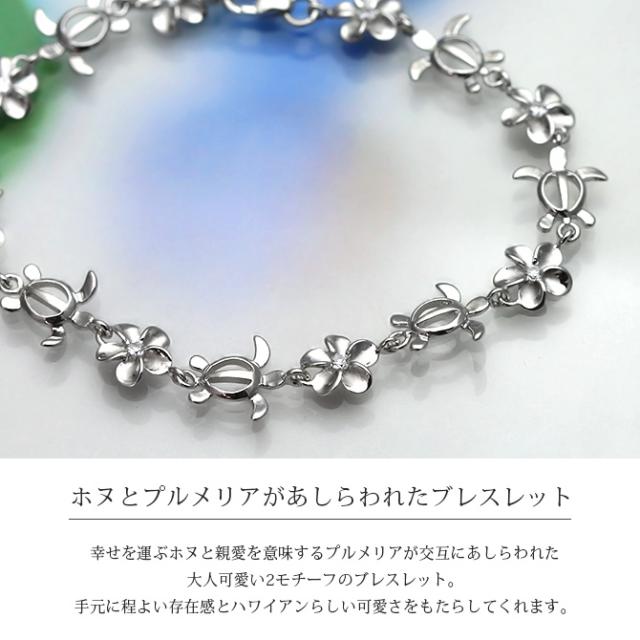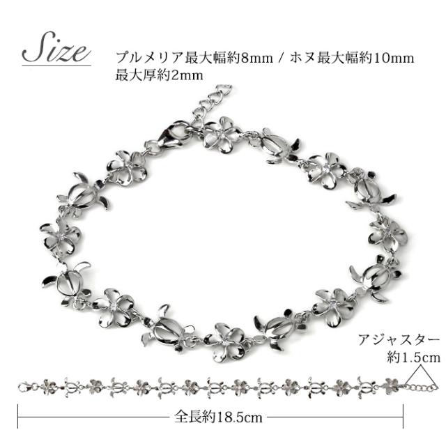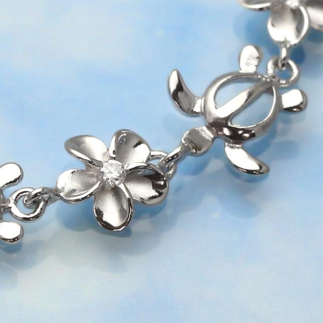 ハワイアンジュエリー ホヌ ブレスレット 花 ホヌ プルメリア 長さ調節可能 シルバー925 ロジウムコーティング ジルコニア パーツ アジャスター 彼女 妻 女性 レディース 誕生日 プレゼント クリスマス 【品番:SBR3588】