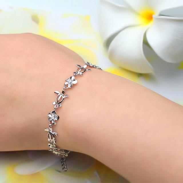 ハワイアンジュエリー シルバー925 ホヌ&プルメリア ブレスレット