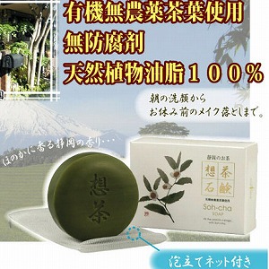洗顔石鹸 お茶屋さんが作った 想茶石鹸 ふわふわ、もこもこ、きめ細かな泡が作れる、泡立てネット付き 石けん せっけん 洗顔せっけん 肌にやさしい ふわふわ もこもこ 泡 おすすめ 敏感肌 泡立ち