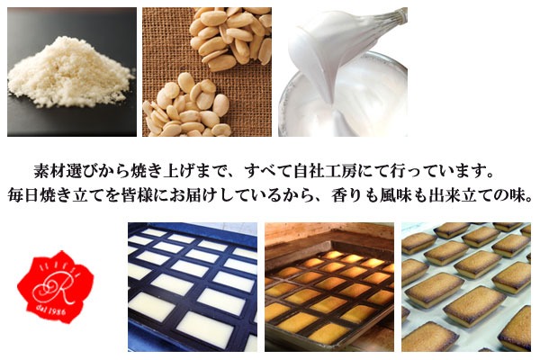 | 内容 | ●徳島洋菓子倶楽部イルローザのフィナンシェ 5個入り(プレーン、抹茶味) ※季節によっては「抹茶味」の変わりに「チョコレート味」が入る場合がございます。 *5個を化粧箱に入れて包装して お届けさせていただきます。(箱のデザインは変更になる場合がございます) ●プレーンの原材料:バター、卵白、砂糖、アーモンド、小麦粉、ショートニング、塩 ●抹茶の原材料:砂糖、卵白、バター、小麦粉、ヘーゼルナッツ、転化糖、抹茶 ●賞味期限:30日間(常温)(パッケージに記載) |