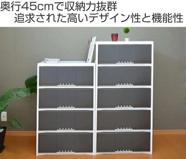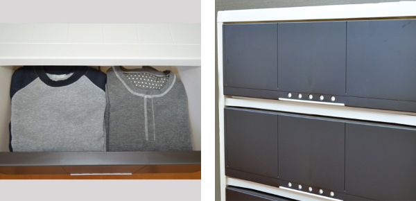 | 奥行45cmの大容量 2列で入れてもゆとりのある収納スペースでたっぷり収納。引き出し1段につき、セーターなら約8枚が収納可能です。 | 高いデザイン性 シンプルなのにお洒落な絶妙のデザイン。インテリアになじみやすく、視界の邪魔をしません。 |