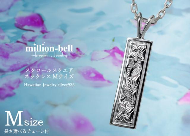 ハワイアンジュエリー ネックレス シルバー ネックレス 刻印 無料 誕生石入れ可 Mサイズ 縦26mm スクエア プレート シルバー925 ギフトラッピング可能 チェーン 長さ選べる プレゼント ホワイトデー 卒業式 入学式 【品番:CG-SP10802】