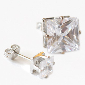 【メール便対応】7mm BIGサイズ スクエア ラインストーン クリアー 20G(0.8mm) ピアス 片耳用 1個 サージカルステンレス シンプル ピアス ゲリラ┃