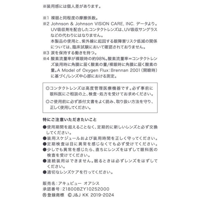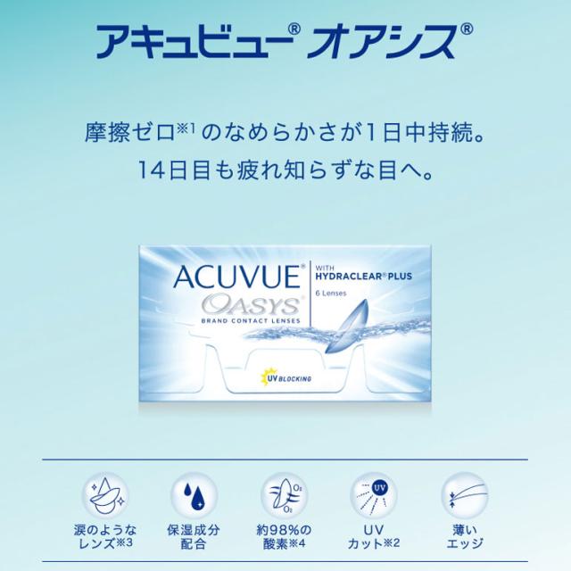 アキュビューオアシスは、ジョンソン&ジョンソンが提供する2週間使い捨てのコンタクトレンズです。この2箱セットには、各箱に6枚のレンズが入っており、両目で3ヶ月分の使用が可能です。特に注目すべきは、UVカット機能が搭載されている点で、紫外線から目を守ることができます。また、HYDRACLEARR PLUS技術により、長時間の装用でも快適なつけ心地を実現しています。視力矯正と目の健康を両立させたい方に最適な選択です。