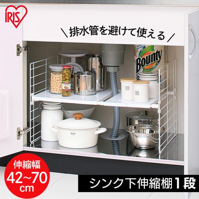 伸縮棚 シンク下 シンク下収納棚 キッチン 収納 伸縮棚 伸縮式 1段 キッチン収納 おしゃれ スリム 整理整頓 シンク下 1段 アイリスオーヤマ 【int】