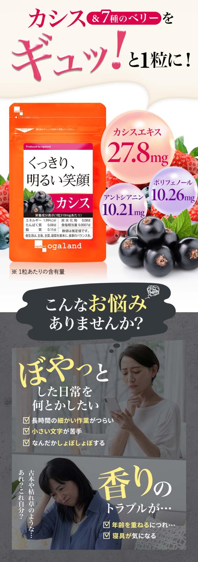 主要原料(1カプセルあたり):カシスエキス末 27.8mg