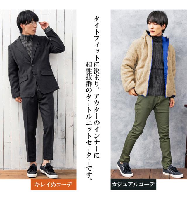 | 特徴 | 高級感ある素材が上級コーデを支えてくれる活躍度満点のタートルネックニットセーター! ボリュームあるリブ仕立ての2重ウス編みデザインでタイトフィットに決まり、 アウターのインナーに相性抜群のタートルニットセーターです。 |