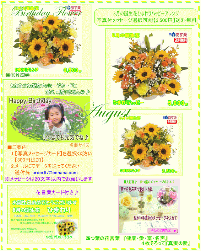 8月の誕生花ひまわりハッピーアレンジ5,000円【送料無料】ネット特価!