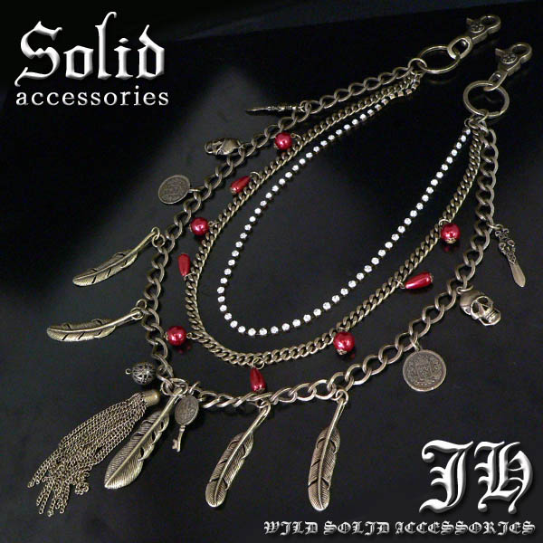 送料無料 超重厚 お兄系 フェザー スカル 羽根 ウォレットチェーン 【 w82 】