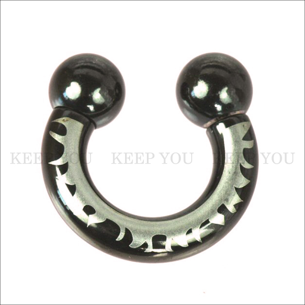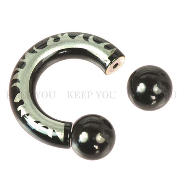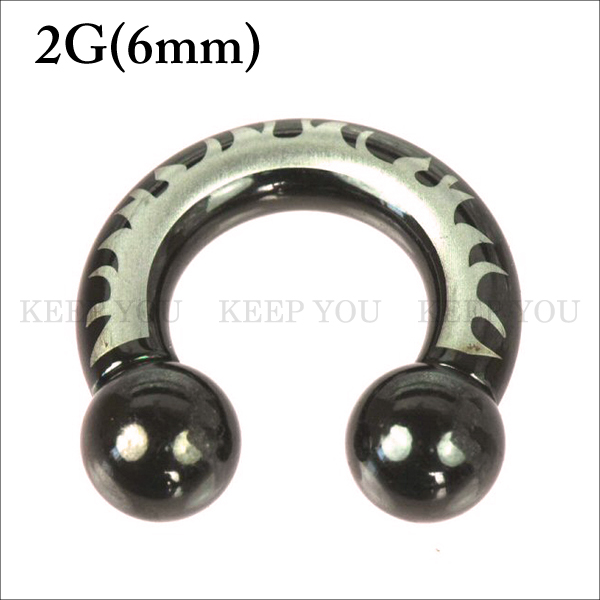 メール便 送料無料 サーキュラーバーベル ブラック トライバル 2G(6mm) BLACK ハードデザイン ボディピアス ボディーピアス 黒色 2ゲージ ┃