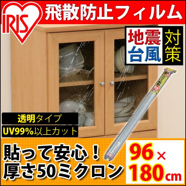 ガラスフィルム 飛散防止フィルム(96×180cm) HBF-9618N 防災用品 飛散防止 防災グッズ 防災 地震対策 災害 窓ガラス 食器棚 ガラスケース ガラス アイリスオーヤマ
