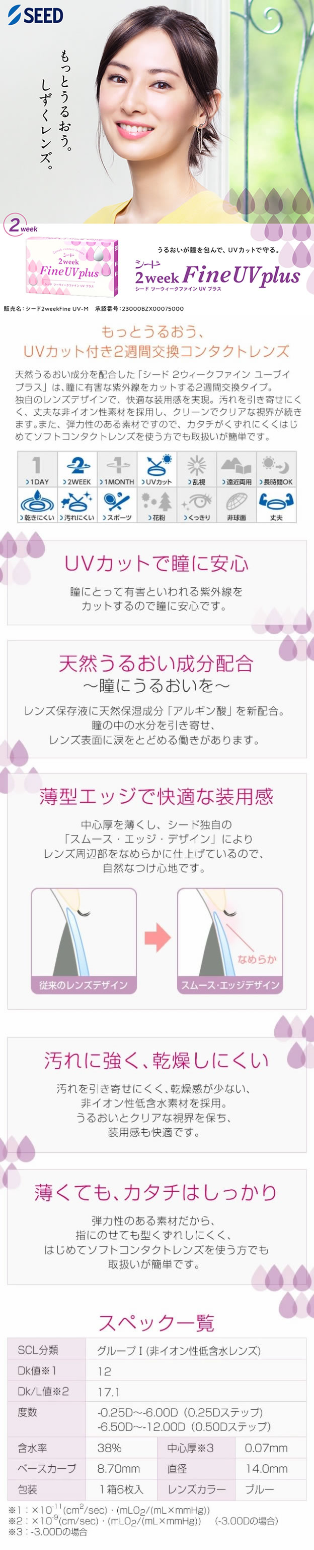 ★メール便送料無料★シード 2ウィークファインUVプラス 1箱 6枚入◆2week コンタクトレンズ クリアレンズ SEED◆