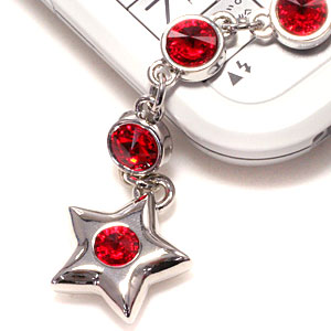 【激安メガセール!】【52-80】【スワロフスキー使用】CRYSTAL(クリスタル) スター型 携帯ストラップ シャム色