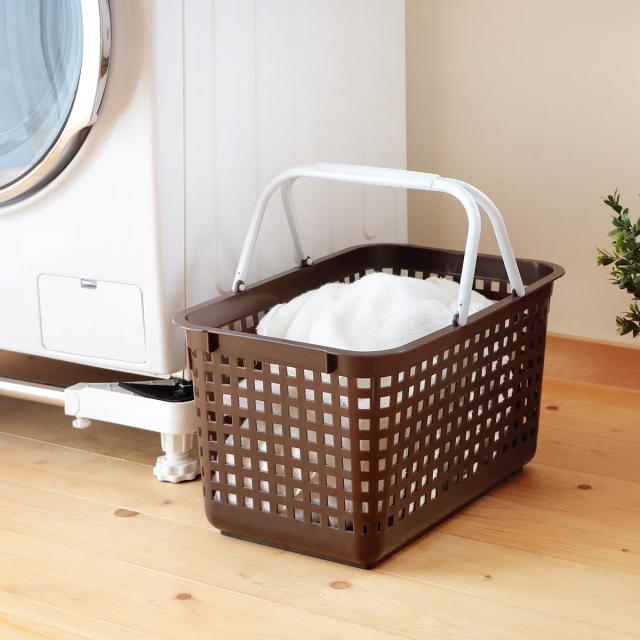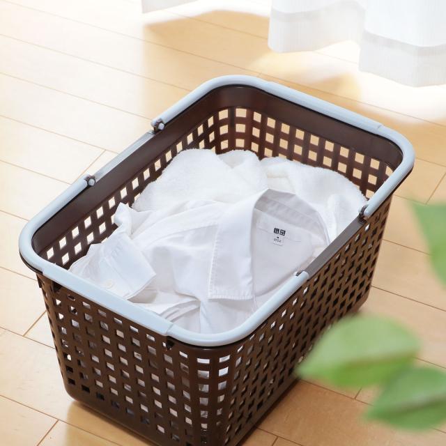 シンプルでナチュラルな雰囲気のランドリーバスケット、Mサイズです。プラスチック素材で扱いやすく、格子状なので通気性も抜群です。