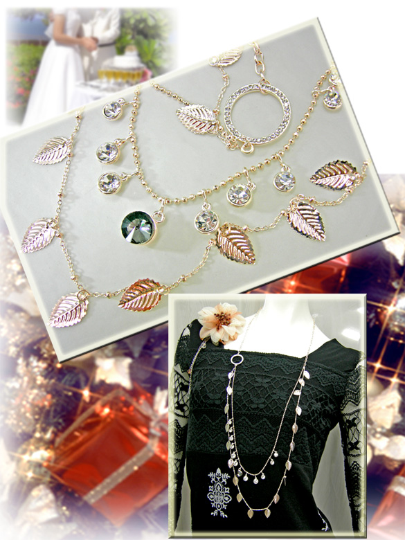 2着で5千円さらに送料無料ネックレスコスチュームジュエリーリーフストーンウォームシルバーパーティーアクセ2次会ギフトに