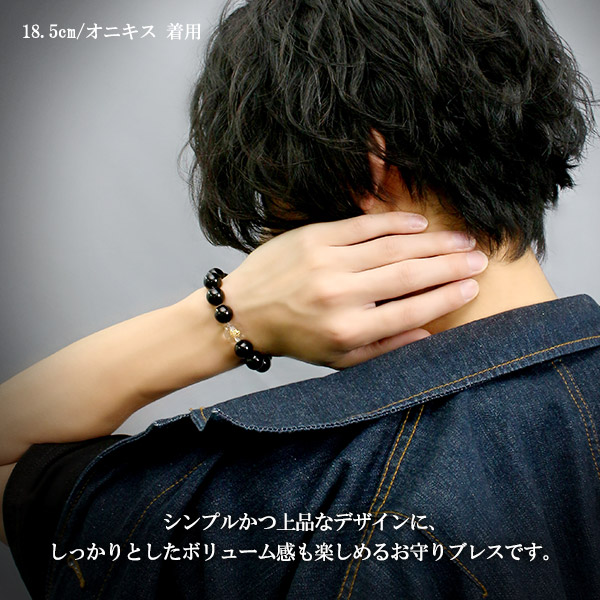 シンプルかつ上品なデザインに、しっかりとしたボリューム感も楽しめるお守りブレスです。