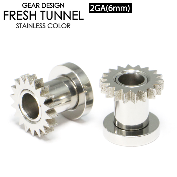 【メール便対応】フレッシュトンネル ギア 2G(6mm) サージカルステンレス316L 歯車 デザイン ハード ボディピアス ロブ アイレット イヤーレット 稀少 デザイン 2ゲージ┃