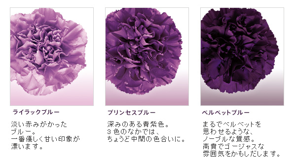 - いつも紫色のカーネーションにしてほしいと指定されるので毎年お世話になっています。今年も綺麗なお花ありがとうございます。