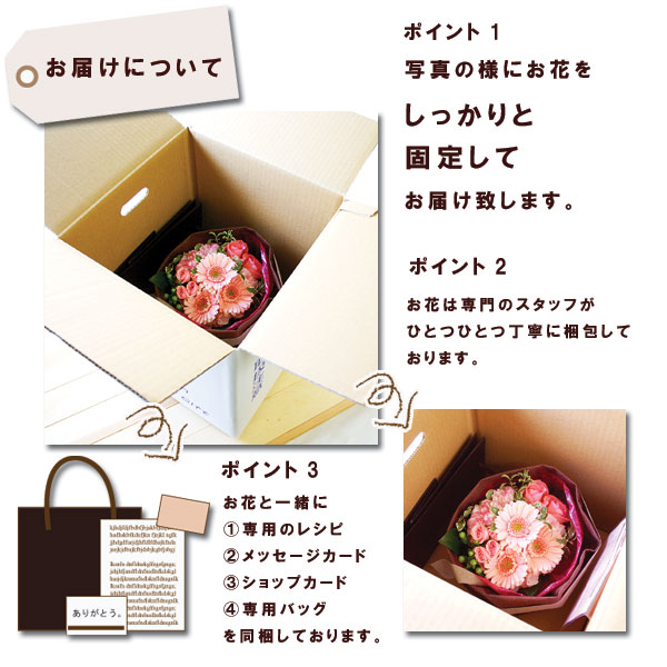●品質保証:ショップカードに当店の品質保証を明記してお花を発送させていただいております。