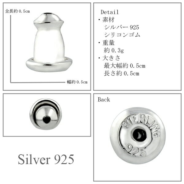ピアスキャッチ 【2個セット】【シルバー925製】 ピアス用シリコンゴムキャッチ 銀 SILVER シルバー ピアス