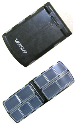 小物ケースがモバイル性を極めた。収納スペースは5コマ浅型+5コマ深型タイプです。フックやシンカー、スナップなどを収納するのに適しています。