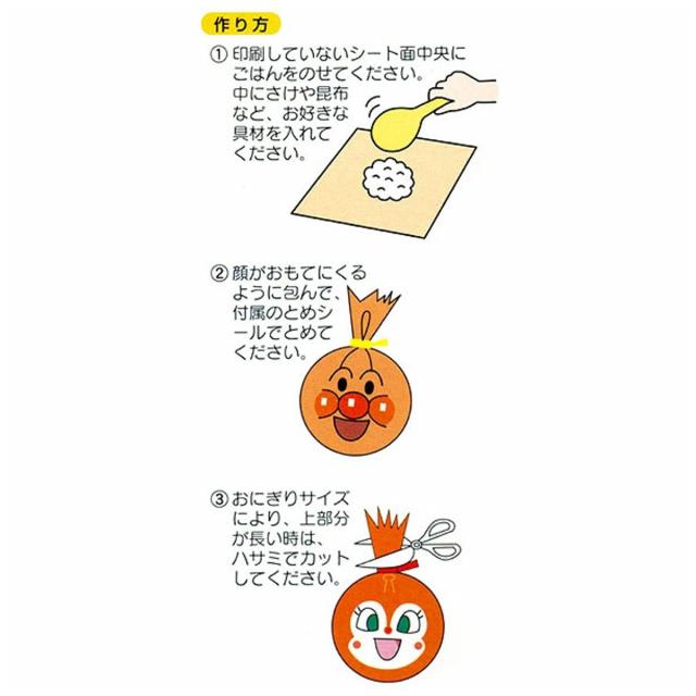 ●くるっと包むだけで簡単にアンパンマンのおにぎりが作れる、おにぎりシートです。