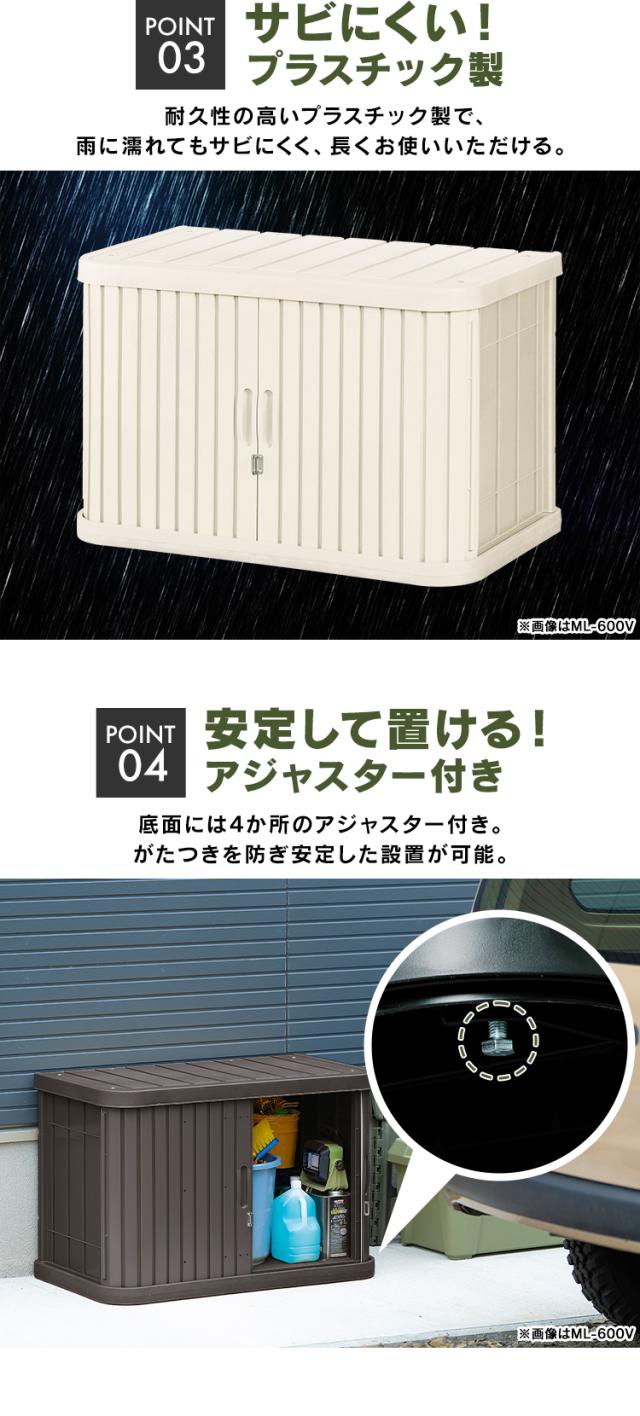 ベランダ等の狭いスペースでの使用に最適なミニロッカーです。灯油ポリタンクが3本収納できる他、園芸用品、レジャー・スポーツ用品の収納に便利です。扉は観音開きのシャッターで、しなやかでスムーズな開閉を実現。盗難防止に市販の南京錠が使える金具付です。★お客様組立て