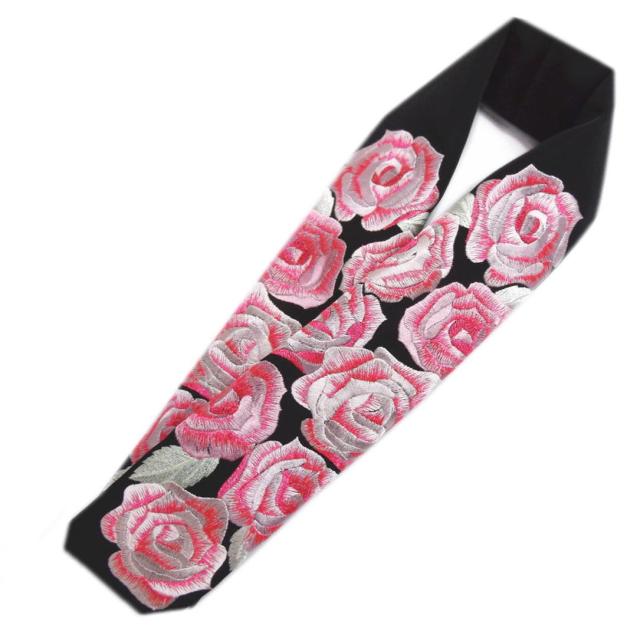 半衿 半襟 刺繍 黒色地ピンク薔薇 日本製 振袖 成人式 卒業式 袴 着物 女性用 新合繊 シルエリー レディース はかま きもの 振袖用