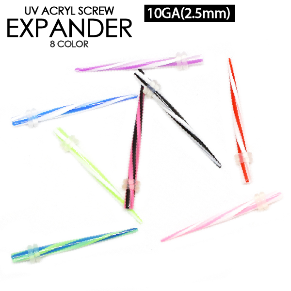 【メール便対応】UVアクリル 拡張器 スクリュー 10G(2.5mm) エキスパンダー エクステンション ニードル ボディーピアス ホールアップ カラー 10ゲージ(2.5ミリ)┃