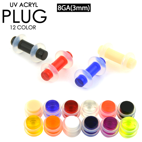 【メール便対応】プラグ UVアクリル 8G(3mm) シリコンゴムで両側を固定【PLUG リテーナー シークレットピアス ホールキープ】 ボディピアス ロブ 8ゲージ(3ミリ)┃