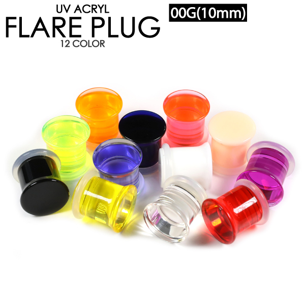 【メール便対応】UVアクリル フレアプラグ 00G(10mm) カラー リテーナー ホール キープ 片側をゴムで固定 シークレットピアス ハーフフレア ボディーピアス ロブ 00ゲージ(10ミリ)┃