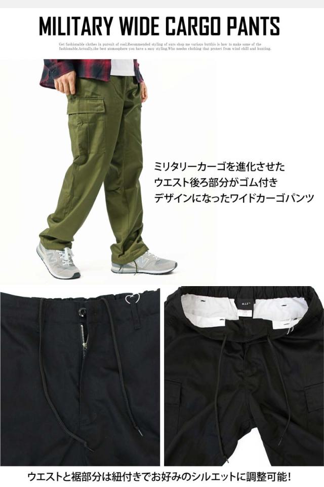 ミリタリーカーゴを進化させたウエスト後ろ部分がゴム付きデザインになったワイドカーゴパンツ!