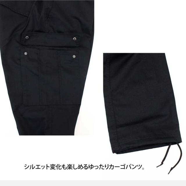 | 特徴 | ミリタリーカーゴを進化させたウエスト後ろ部分がゴム付きデザインになったワイドカーゴパンツ! 大きめフラップポケットがインパクト大。 シルエット変化も楽しめるゆったりカーゴパンツ。 ウエストと裾部分は紐付きでお好みのシルエットに調整可能! 後ろウエスト部分が、バックシャーリングデザインなのでストレスフリーで着脱できます。 男女兼用で着用できる、機能性にも優れた今シーズン一押しのトレンドモデルです。 ワイドシルエットを活かしたオーバーサイズトップスとのスタイリングがおすすめ。 シンプルな無地Tシャツはもちろん、ネルシャツやスウェット・パーカーと合わせるだけでも スタイリングがキマります。 ハイカットシューズやスニーカーを合わせてミリタリーに仕上げるのがGOOD! トップスを選ばずに万能に穿きこなせる万能の一本です。 |