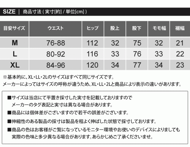 メーカーによってはサイズの呼称が違うため、XL・LL・2Lと商品により表示の違いがあります。