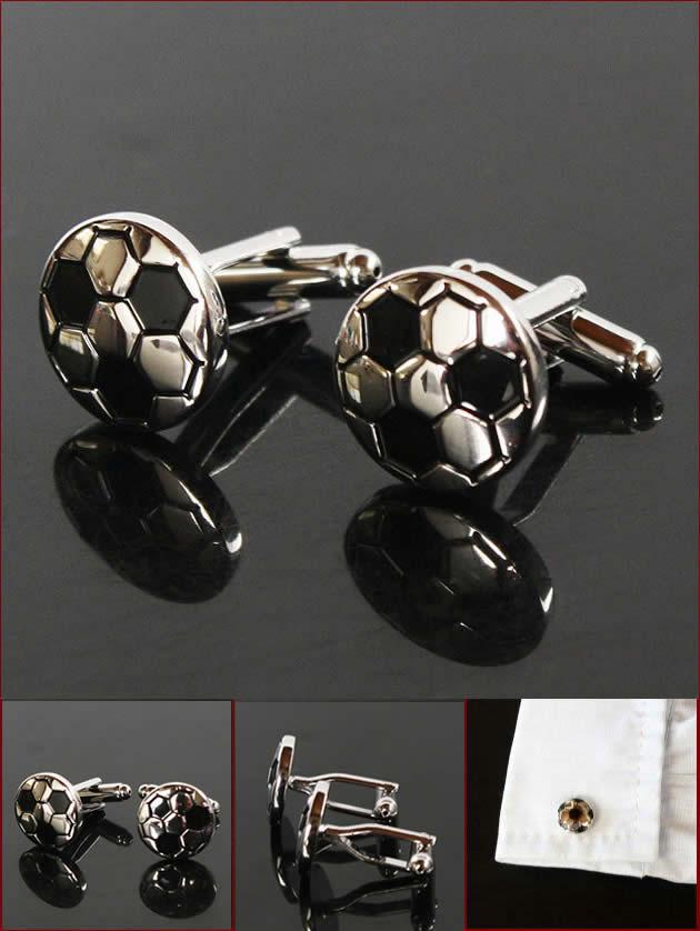 サッカーボールをモチーフにしたユニークなカフスボタン。