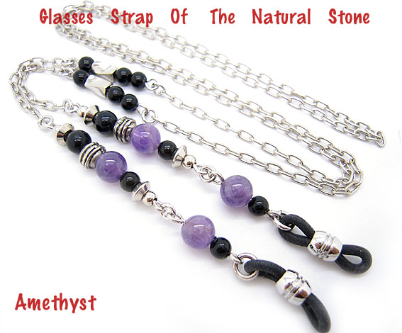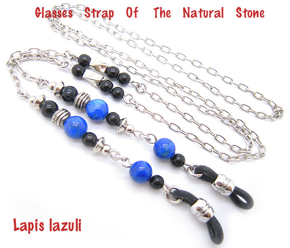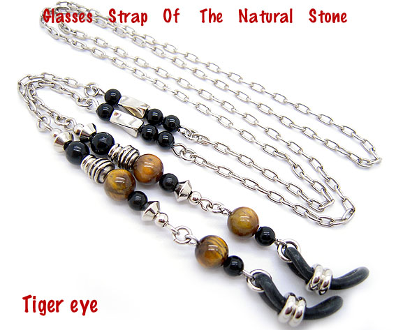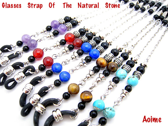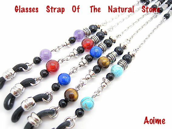 天然石とメタルチェーンの組み合わせで、程よいキラキラ感が女性らしさをアップさせます。天然石のカラーがポイントになっていてとってもかわいいメガネチェーンですよ。5種類の天然石からお選び下さい。(左からアメジスト,カーネリアン,ラピスラズリ、タイガーアイ、ターコイズ)