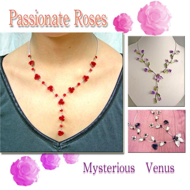 2着で5千円さらに送料無料ネックレス薔薇ヨーロピアンミスティーローズルビーレッドアメジストラベンダーオニキスブラックカラーストーン