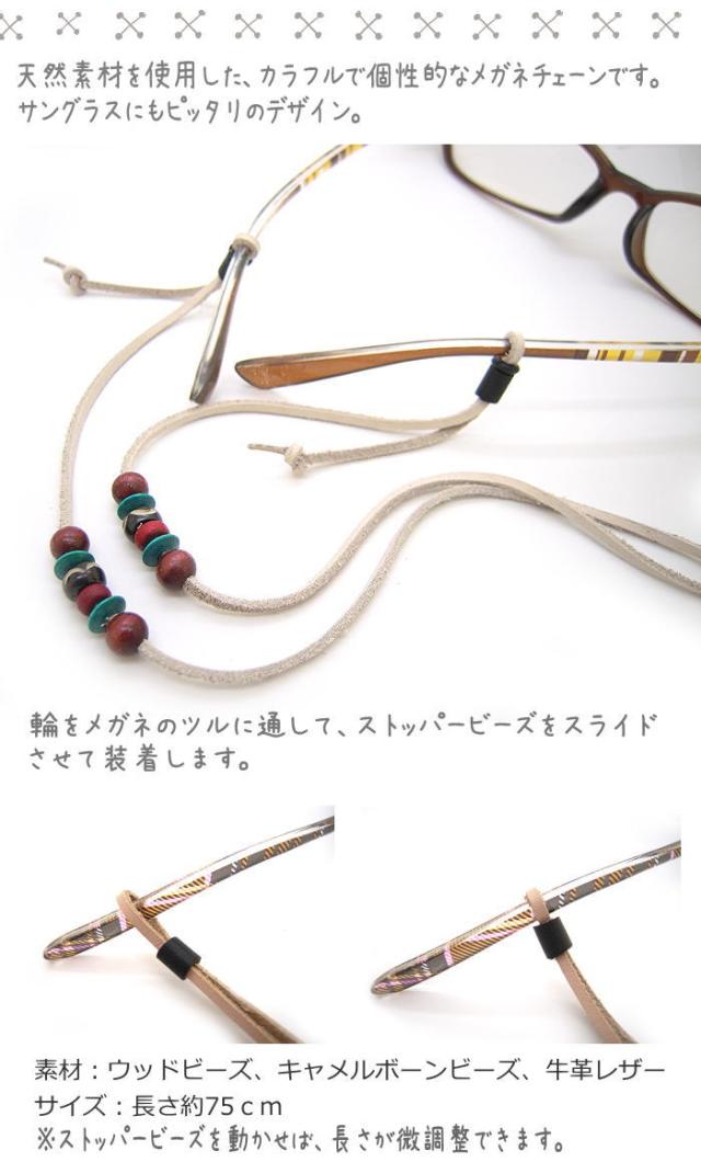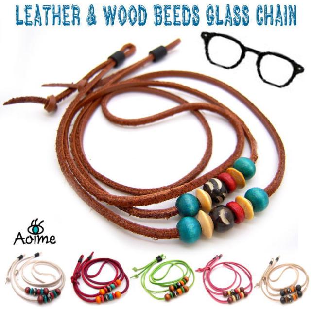 メガネチェーン めがね 眼鏡 サングラス ストラップ レザー&ウッドビーズ gcy004