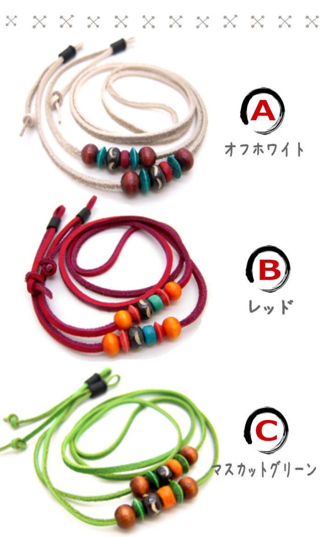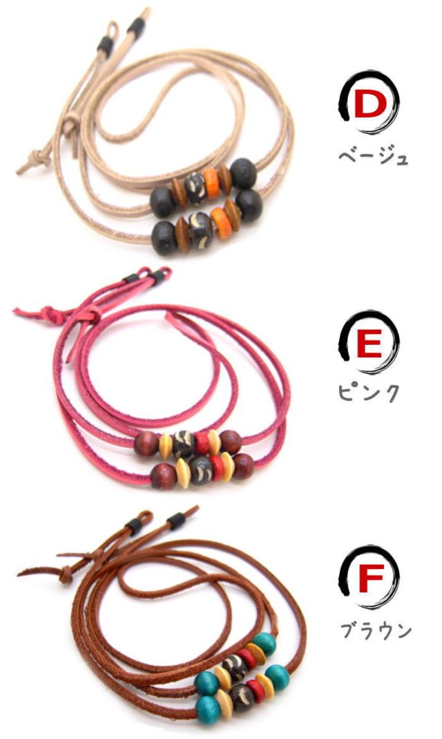 素材:ウッドビーズ、キャメルボーンビーズ、牛革レザー