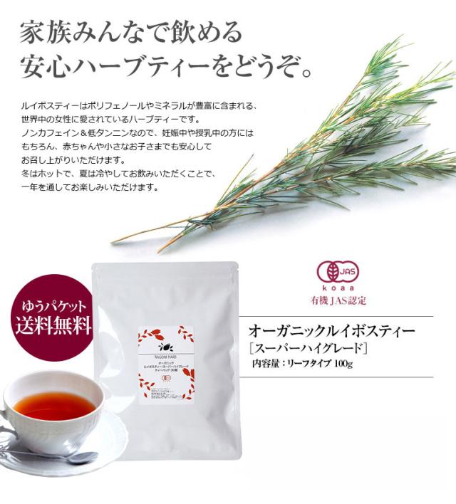 ルイボスティー スーパーハイグレード オーガニック リーフ 100g ルイボス 健康茶 ノンカフェイン ハーブ ダイエット お茶 有機JAS