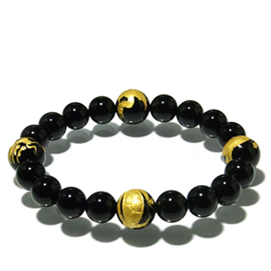 ◆風水・四神獣金手彫りオニキス 10mm玉 16.5cm◆ ・Iニキスブレスレット (レディースSサイズ)