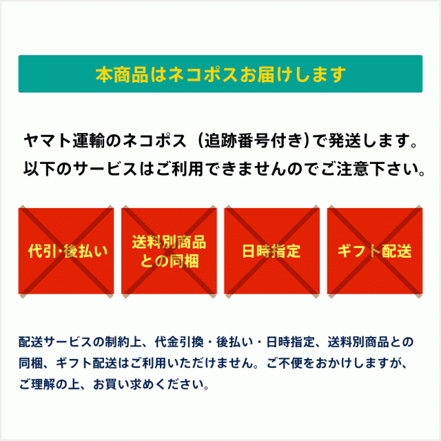 - 代引き(コレクト)は不可です。ただし、5袋以上のご注文の場合や、地域によっては通常便にての発送となります。その際は日時指定、代引きも可能です。ご相談ください。