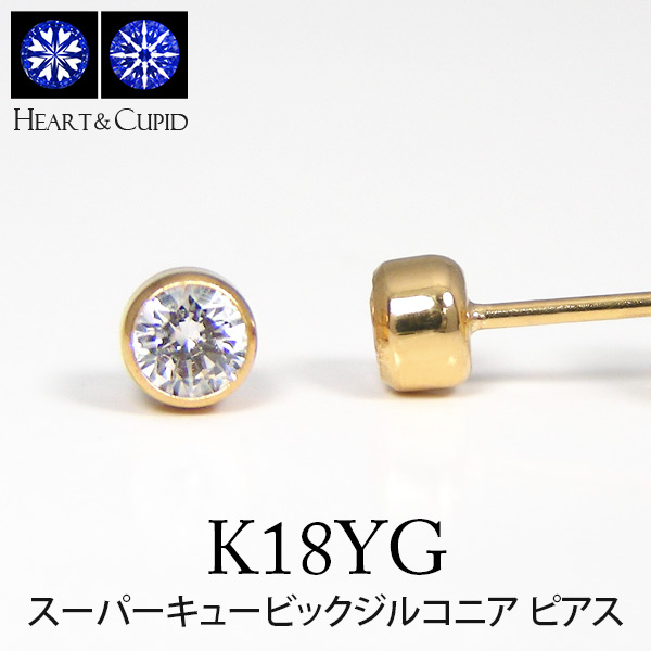 スーパー キュービックジルコニア ピアス K18YG 18k 18金 イエロー ゴールド 伏せ込み フクリン 3mm cz