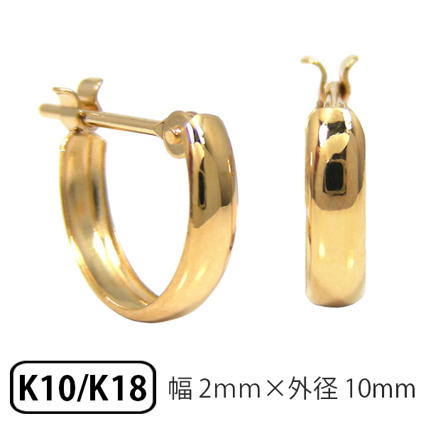 フープピアス ピアス 18k K18 18金 10k K10 10金 ゴールド 甲丸 スナップ 幅2mm 外径10mm 輪っか クロッシング 遮断式 リング ワンタッチ キャッチレス レディース メンズ