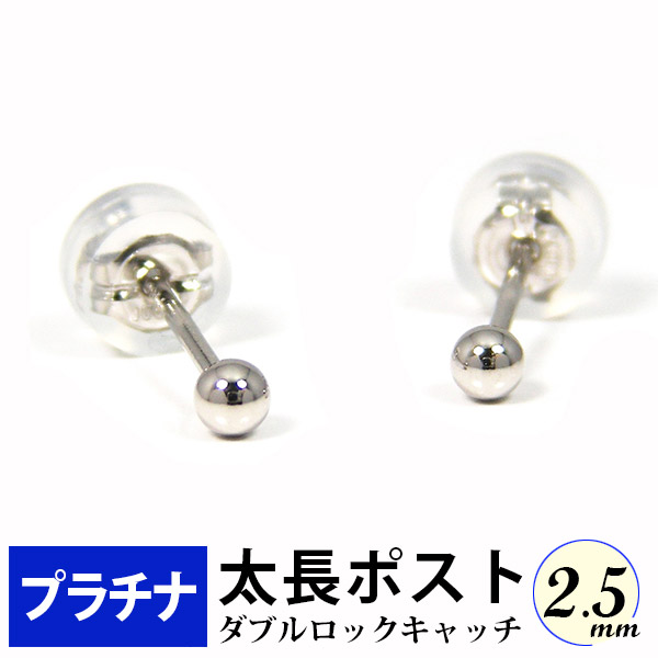 太長ポスト ファーストピアス プラチナ Pt900 軸太 2.5mm 丸玉 ダブルロックキャッチ付 太め 太い 長め 長い