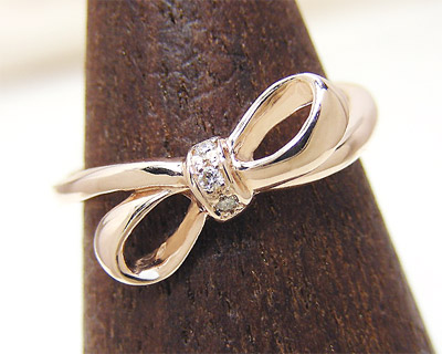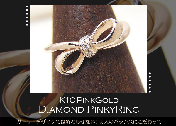 ダイヤモンド リボン ピンキーリング リング K10PG/YG/WG