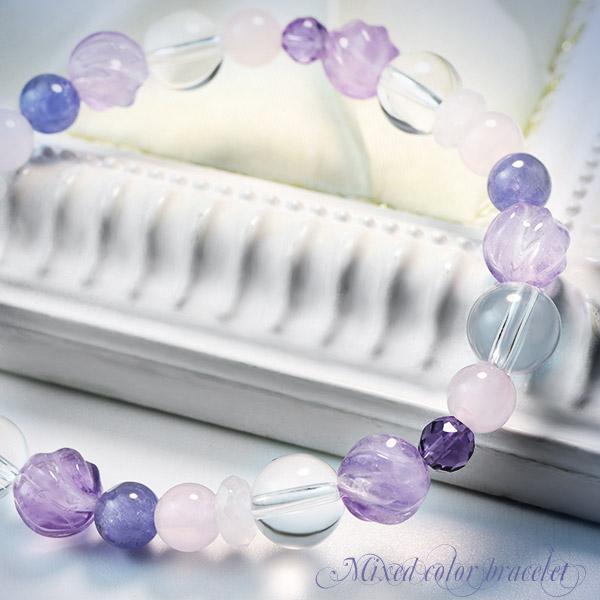 8mm 16.5cm 女性らしさ ラベンダー カラー ラベンダーアメジスト アメシスト ローズクォーツ タンザナイト ブレスレット レディースS