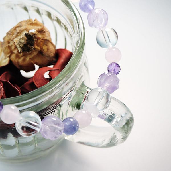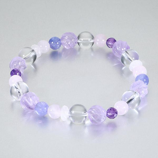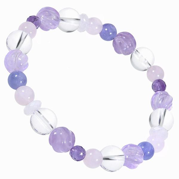 ラベンダーアメジスト・ローズクォーツ・タンザナイトを組み合わせた、艶やかなラベンダー色のブレスレットです。