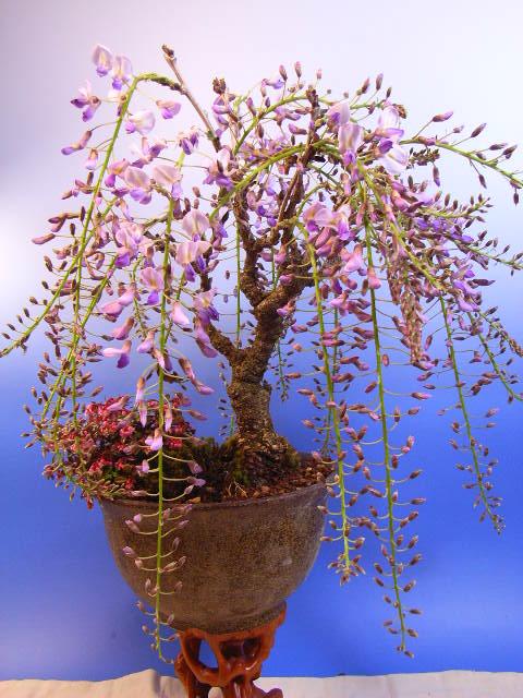 贈り物に最適誕生日 退職祝い 色々な プレゼントに最高の贈り物 花が咲いたときには きっと誰かに伝えたくなる 当店自慢の藤寄せ植え盆栽です。